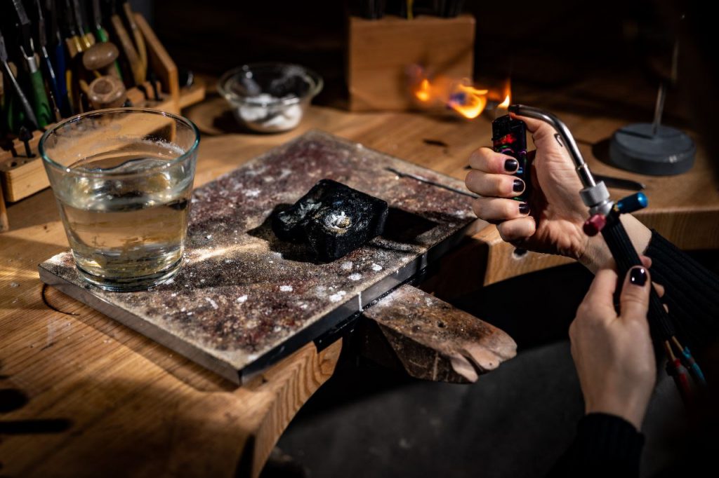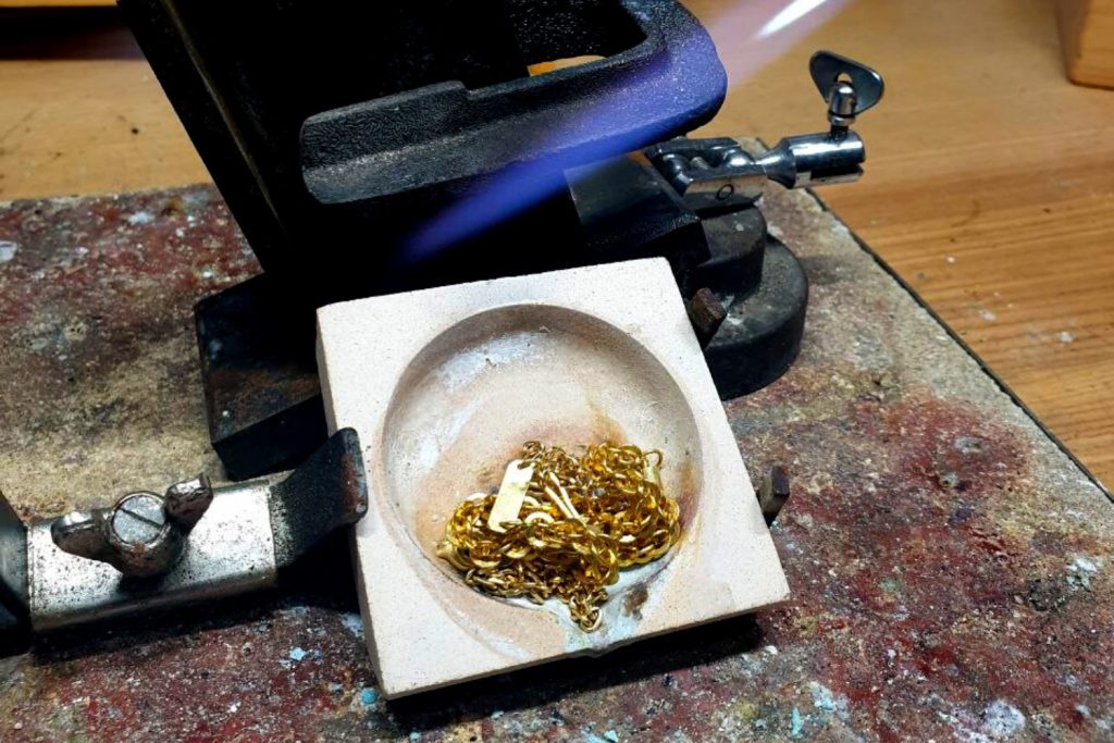 Ich arbeite mit recycelten Metallen und Altgold.